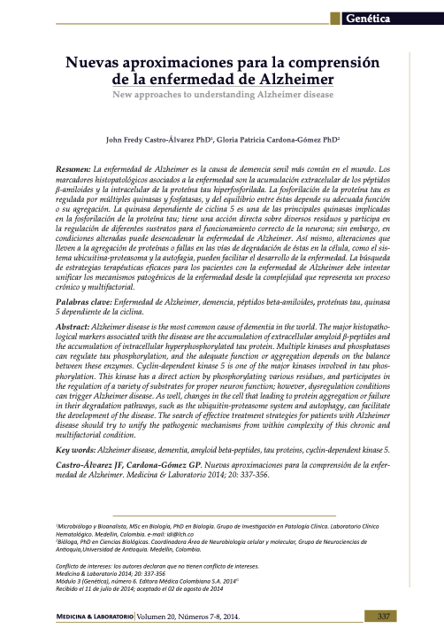 Hay muchos avances en la detección de biomarcadores que dan cuenta del inicio y avance de la enfermedad en los pacientes. La proteína Tau y la beta amiloide han sido los blancos terapéuticos para evitar y controlar la enfermedad. Nuevos biomarcadores muestran otras miradas a la comprensión de nuestro cerebro.